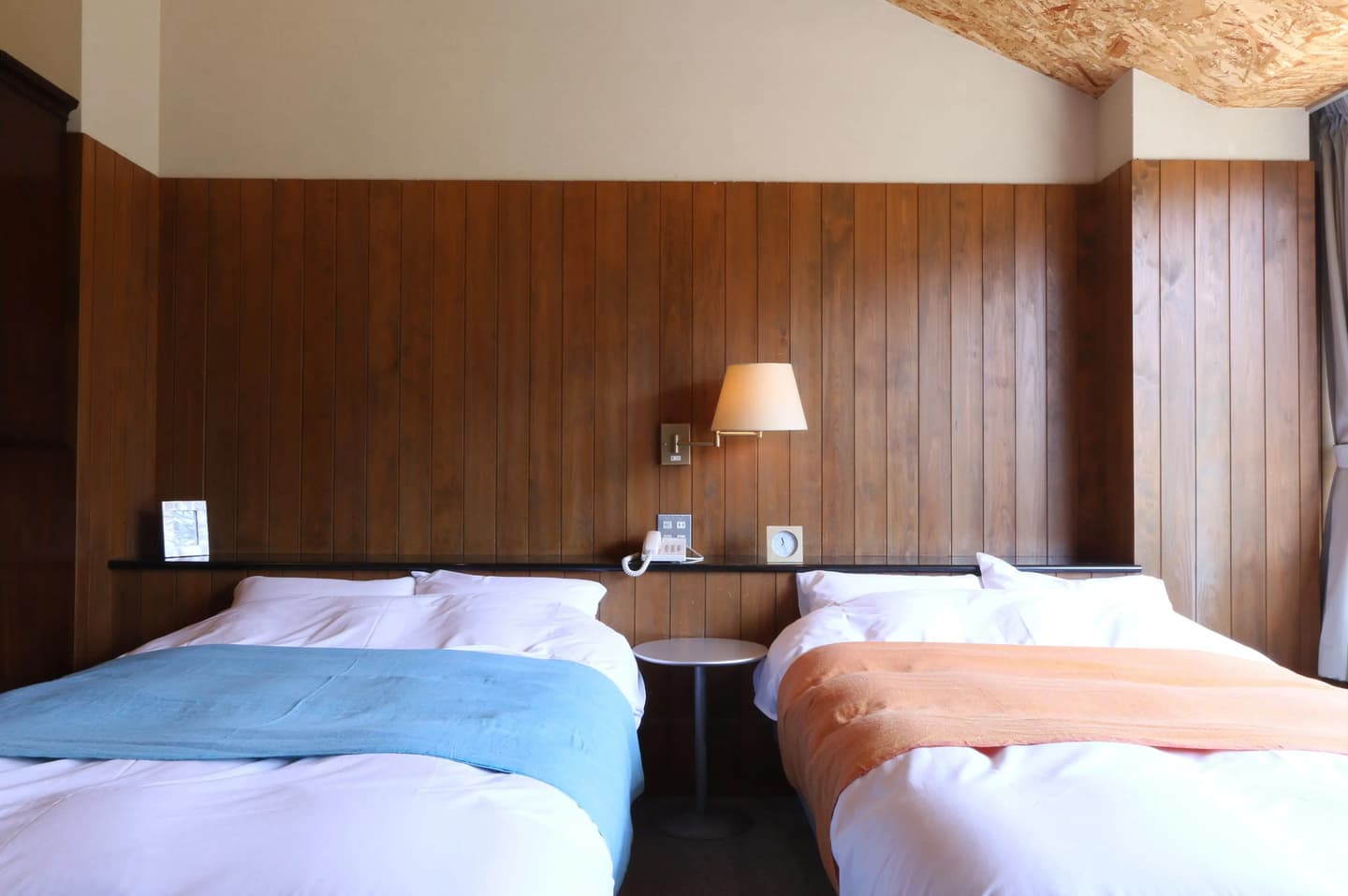 ファミリータイプ、わくわくするロフト付きのお部屋、ゆったりシングルでも、わいわいベッドを並べても。窓からの景色も心地よい自然を感じられます。
